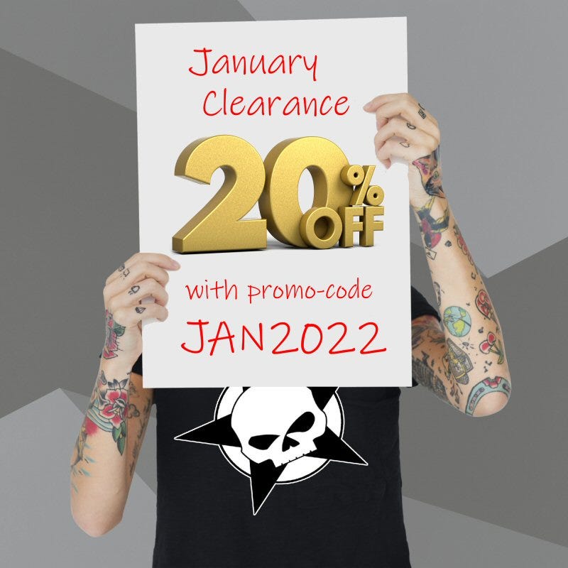 This weekend though we really need to clear some stock out of The Bunker so we’re running a FLASH SALE and offering 20% OFF EVERYTHING IN OUR STORE when you use promo-code JAN2022.